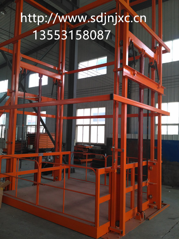 導軌式液壓升降平臺是一種非剪叉式液壓升降平臺,廣泛應用于工礦企業代替電梯提升貨物,具有結構簡單、載重量大、使用壽命長、維護方便、安全使用等特點。尤其適用于帶井道地下無法挖地基的場所。